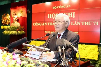 Tổng Bí thư, Chủ tịch nước Nguyễn Phú Trọng phát biểu tại Hội nghị Công an toàn quốc lần thứ 74. (Ảnh: Trí Dũng/TTXVN)