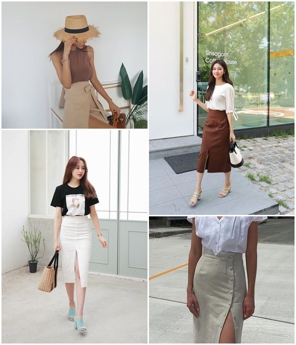 Trong đó, mẫu chân váy bút chì xẻ tà với thiết kế ôm sát và độ dài vừa phải sẽ mang đến cho nàng phong cách vừa trẻ trung mà vẫn vô cùng thanh lịch. Những cô nàng yêu thích phong cách thoải mái, thướt tha hơn một chút có thể chọn mẫu chân váy mini xẻ tà. Bạn có thể thoải mái kết hợp cùng các item khác nhau như áo thun trẻ trung, áo sơ mi cho chính chuyên hoặc điệu đà hơn với các mẫu áo blouse tay loe, bèo nhún,…