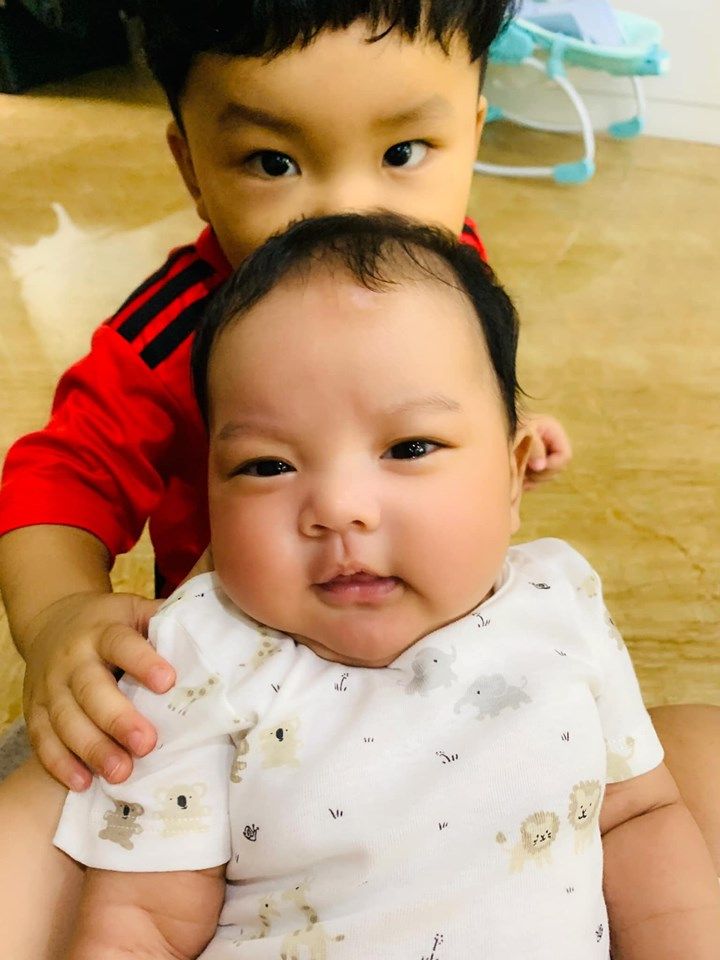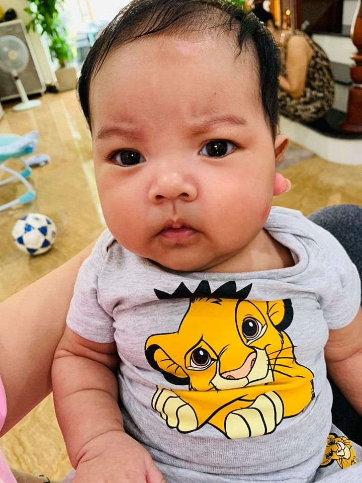 Hải Băng chia sẻ hình ảnh chưa bao giờ công khai khi mới sinh của con trai thứ ba và ảnh của hiện tại. (Nguồn: Internet)