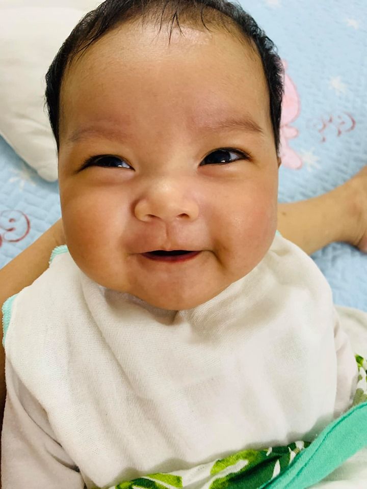 Hiện tại, bé KiO đã tròn 3 tháng tuổi và trộm vía cậu bé phát triển khỏe mạnh. Con trai thứ 3 của Hải Băng và Thành Đạt sở hữu đôi mắt to tròn, trán cao, môi chúm chím mà nhiều người cho rằng cậu bé được thừa hưởng từ ba mẹ.