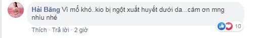 Để giải đáp thắc mắc cho mọi người lí do vì sao KiO bị như thế, Hải Bằng đã giải thích: "Mổ khó thế nên KiO bị ngộp, xuất huyết dưới da. Cám ơn mọi người quan tâm nhé!".
