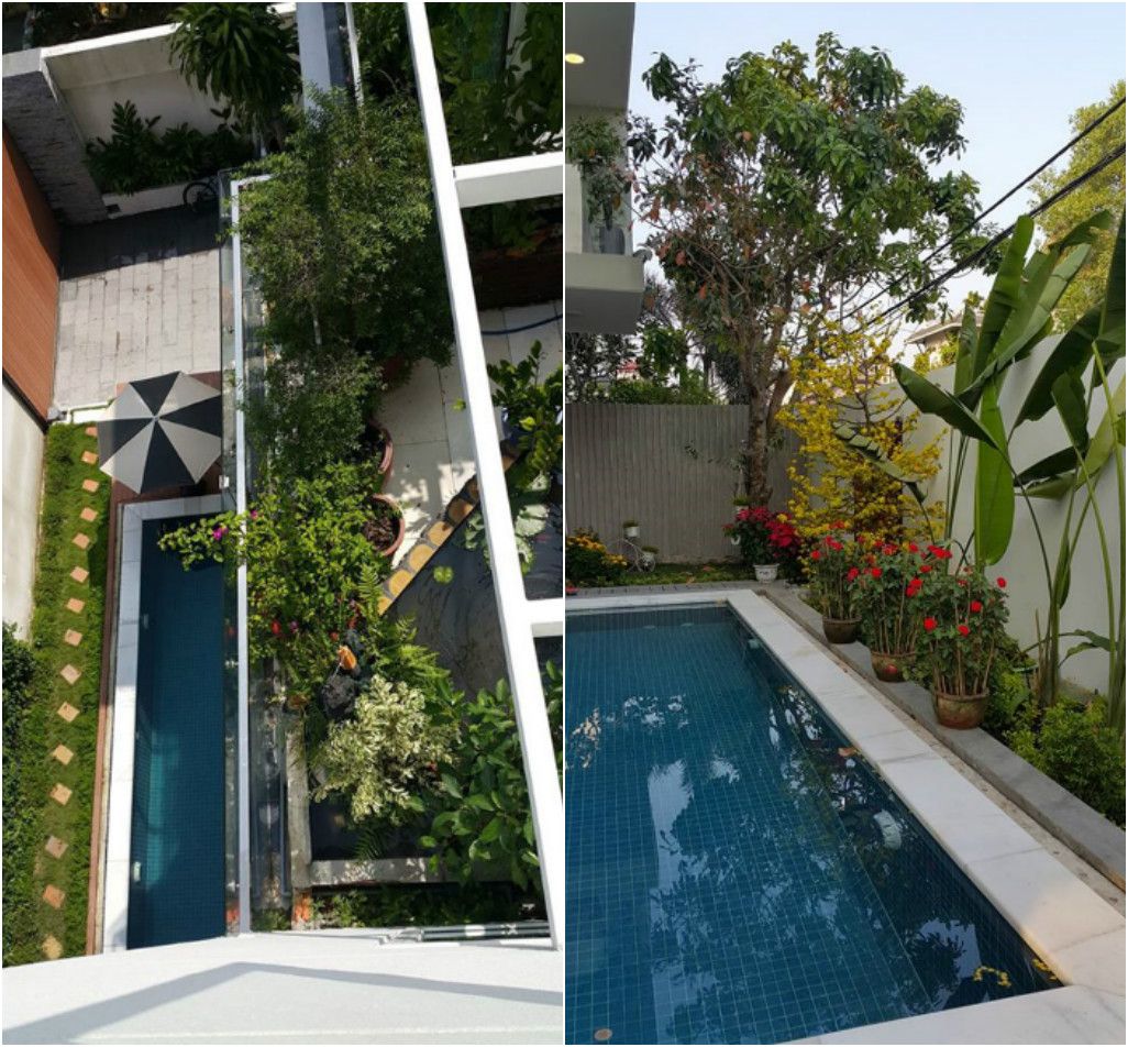 Ngôi biệt thự có 3 tầng và 7 phòng ngủ có thiết kế màu trắng làm chủ đạo. Bên trong còn có cả hồ bơi rộng lớn cho gia đình, gara để ô tô và khu vườn xanh mát. Hiện tại, Hồ Ngọc Hà đang sống tại đây cùng bố mẹ và con trai.
