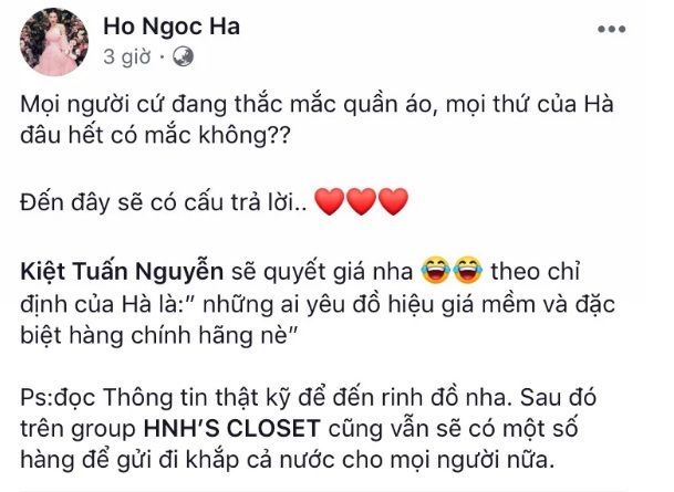 Thậm chí, vì mua quá nhiều đồ hiệu nên thỉnh thoảng Hồ Ngọc Hà đã phải thanh lí lại đồ cũ. Tuy nhiên, dù chỉ là thanh lý hàng hiệu nhưng Hồ Ngọc Hà cũng không tổ chức sơ sài, cô đã lên một kế hoạch cụ thể với không gian sang trọng khiến mọi người phải "mắt tròn, mắt dẹt" vì quá xịn.