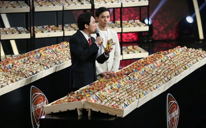 Trên mỗi thùng mì có ghi các dữ liệu mà Thanh Liêm cần phải ghi nhớ: số thứ tự, khu vực, số gói mì, số phiếu xuất kho, số lượng, màu sắc. Ban giám khảo tùy chọn 3 thùng mì.