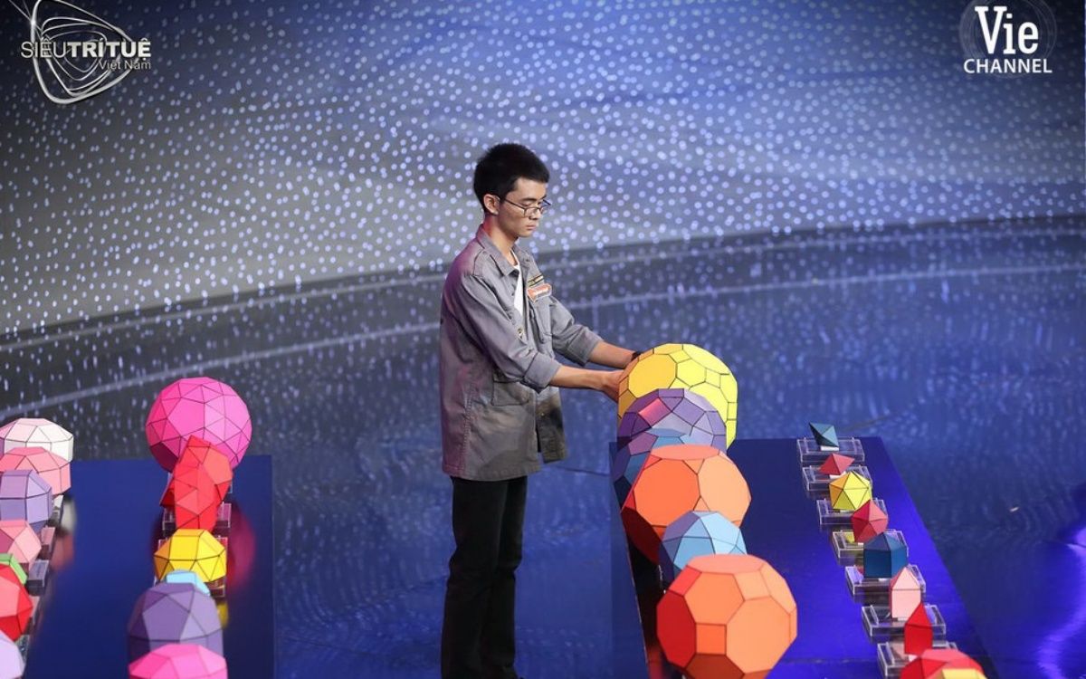 Thành Đạt phải quan sát 105 khối đa diện, sử dụng năng lực ghi nhớ và tưởng tượng không gian để tìm ra vị trí chính xác duy nhất giấu đi điểm sáng mà giám khảo đã chọn.