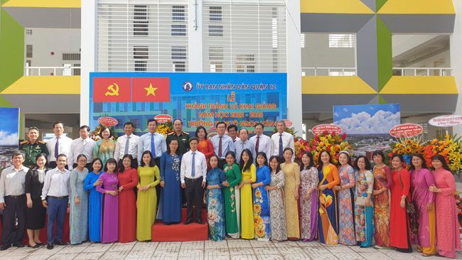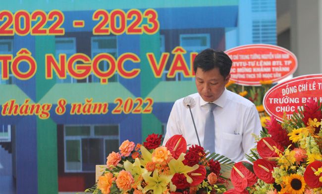 Phát biểu tại buổi lễ, Trung tướng Nguyễn Văn Nam, Ủy viên Ban Thường vụ Thành ủy, Tư lệnh Bộ Tư lệnh Thành phố biểu dương và chúc mừng những thành tích xuất sắc mà cán bộ, giáo viên và các em học sinh Quận 12 đạt được trong năm học vừa qua, một năm học đặc biệt, chịu tác động nặng nề của đại dịch Covid-19. Ông Nguyễn Văn Nam nhấn mạnh: “Năm học 2022-3023, niềm vui của ngành giáo dục Quận 12 càng được tăng thêm với 3 ngôi trường được khánh thành, trong đó có trường THCS Tô Ngọc Vân. Đây là công trình trọng điểm thực hiện Nghị quyết Đại hội Đảng bộ quận lần thứ VI, nhiệm kỳ 2020-2025, và là một trong những dự án trọng điểm được quận quan tâm đầu tư nhằm thực hiện mục tiêu đổi mới căn bản, toàn diện giáo dục đào tạo. Công trình thể hiện sự quan tâm sâu sắc của chính quyền Quận 12 đối với sự nghiệp giáo dục và đào tạo quận nhà”.