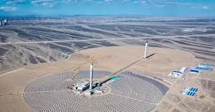 Năng lượng mặt trời có thể được thu từ tấm pin quang điện hoặc nhiệt mặt trời (CSP). CSP sử dụng gương (heliostat) để tập trung ánh sáng mặt trời đến một điểm trung tâm, làm nóng chất lỏng và tạo ra điện. Các dự án lớn như nhà máy tại sa mạc Mojave (Mỹ) có công suất 392 MW và nhà máy điện mặt trời phức hợp Noor ở Morocco sản xuất 510 MW điện. Tại Trung Quốc, một nhà máy nhiệt điện mặt trời hai tháp đầu tiên trên thế giới sử dụng heliostat và muối nóng chảy để lưu trữ nhiệt. Dự án này dự kiến sẽ hoàn thành vào cuối năm và tiết kiệm 1,53 triệu tấn khí thải carbon dioxide mỗi năm.