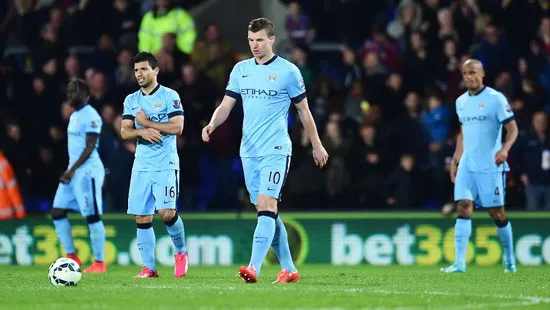 Các cầu thủ Manchester City buồn bã sau trận thua Crystal Palace.