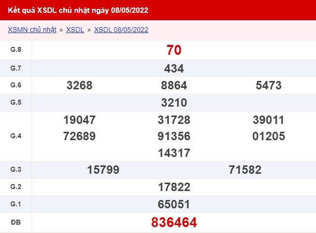 Kết quả XSDL chủ nhật ngày 8/5/2022