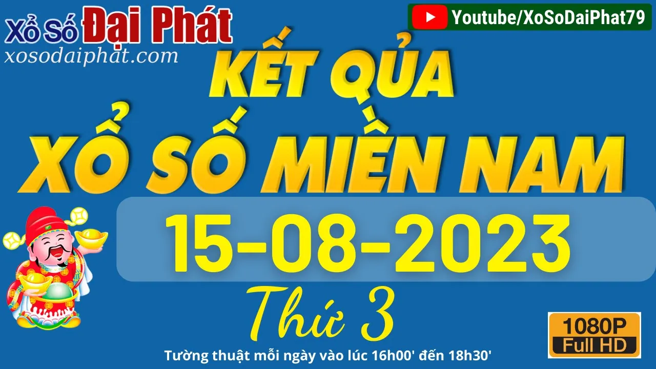 Xem tường thuật trực tiếp XSDLK thứ 3 ngày 15/8/2023, kết quả xổ số 3 miền Bắc – Trung – Nam tại kênh Youtube Xổ số Đại Phát.