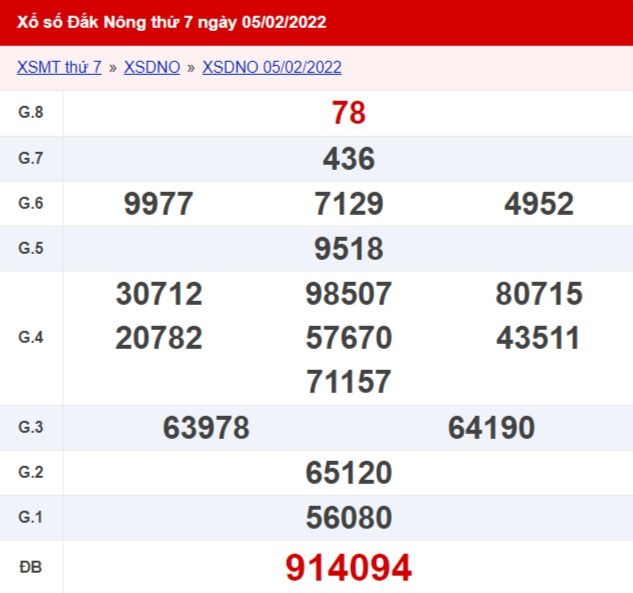 Kết quả XSDNO thứ 7 tuần trước ngày 5/2/2022
